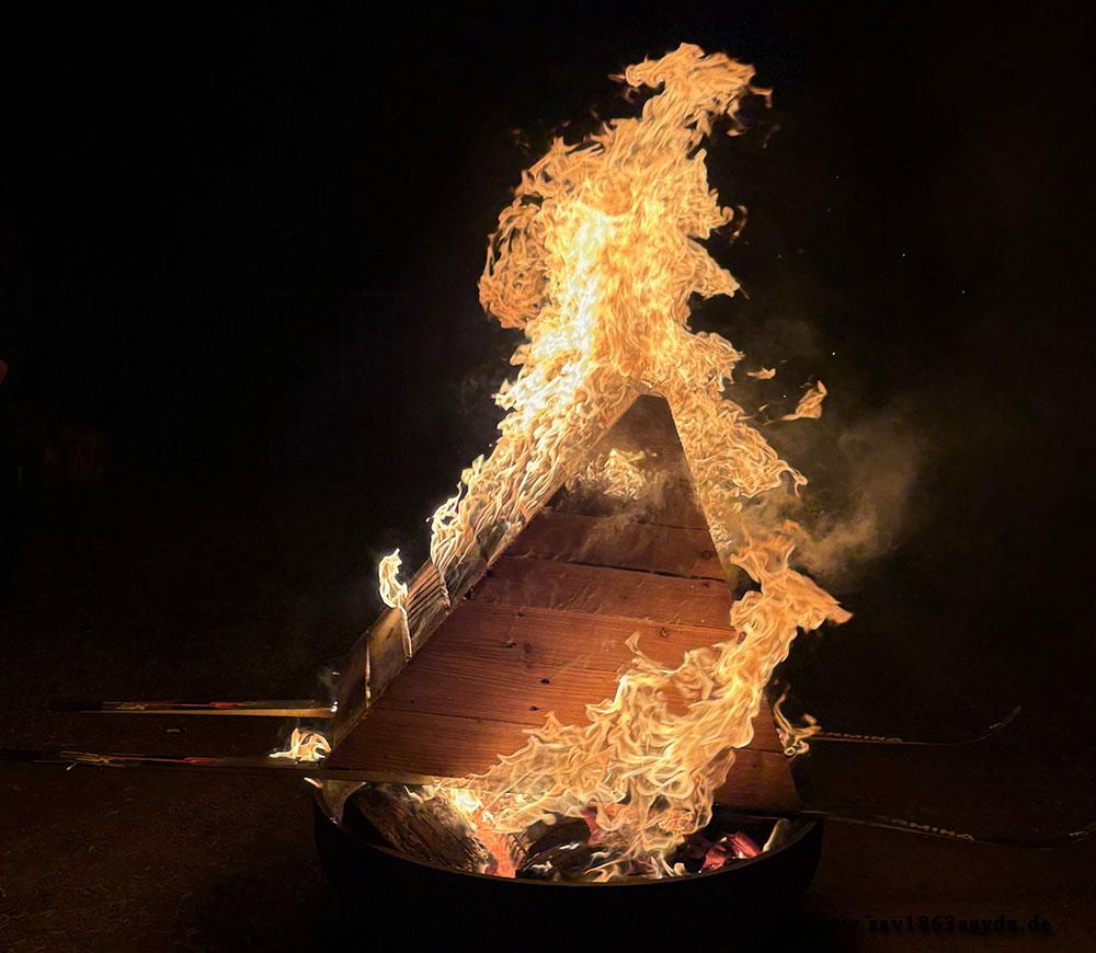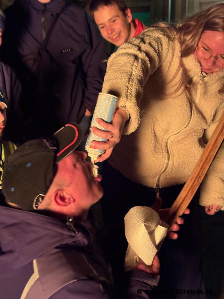 Auch das gesellige Miteinander kam nicht zu kurz: Bei Kaffee und Kuchen sowie einem gemeinsamen Grillabend nutzten die Anwesenden die Gelegenheit zum Austausch und zum gemütlichen Beisammensein. Für Spannung sorgte zudem die traditionelle Schneesuche mit anschließender Sargverbrennung – ein symbolischer Abschied vom Winter, der jedes Jahr für Begeisterung sorgt.